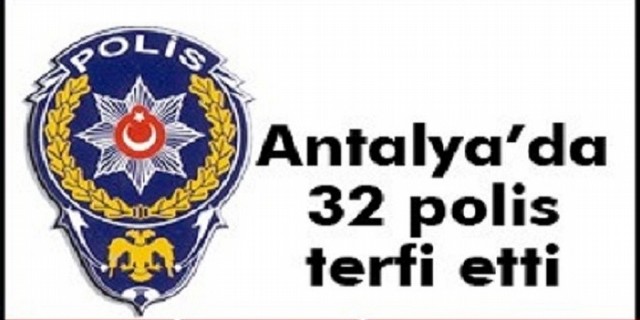 Antalya Emniyet Müdürlüğüne bağlı görev yapan toplam 32 personel bir üst rütbeye terfi etti. Emniyet Genel Müdürlüğü’nün 2014 yılında aldığı kararla, Emniyet mensupları terfi aldı.